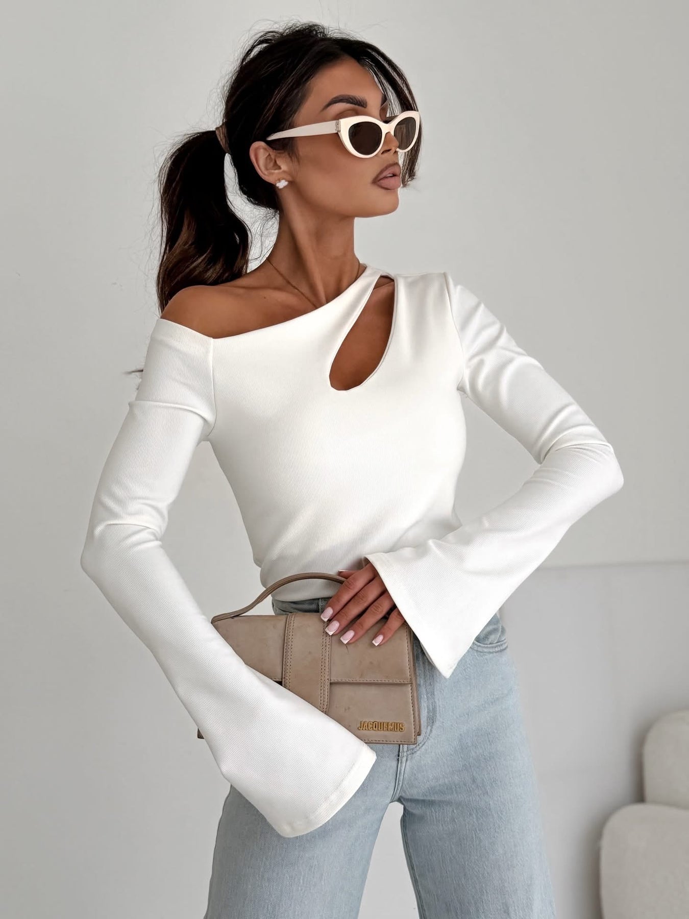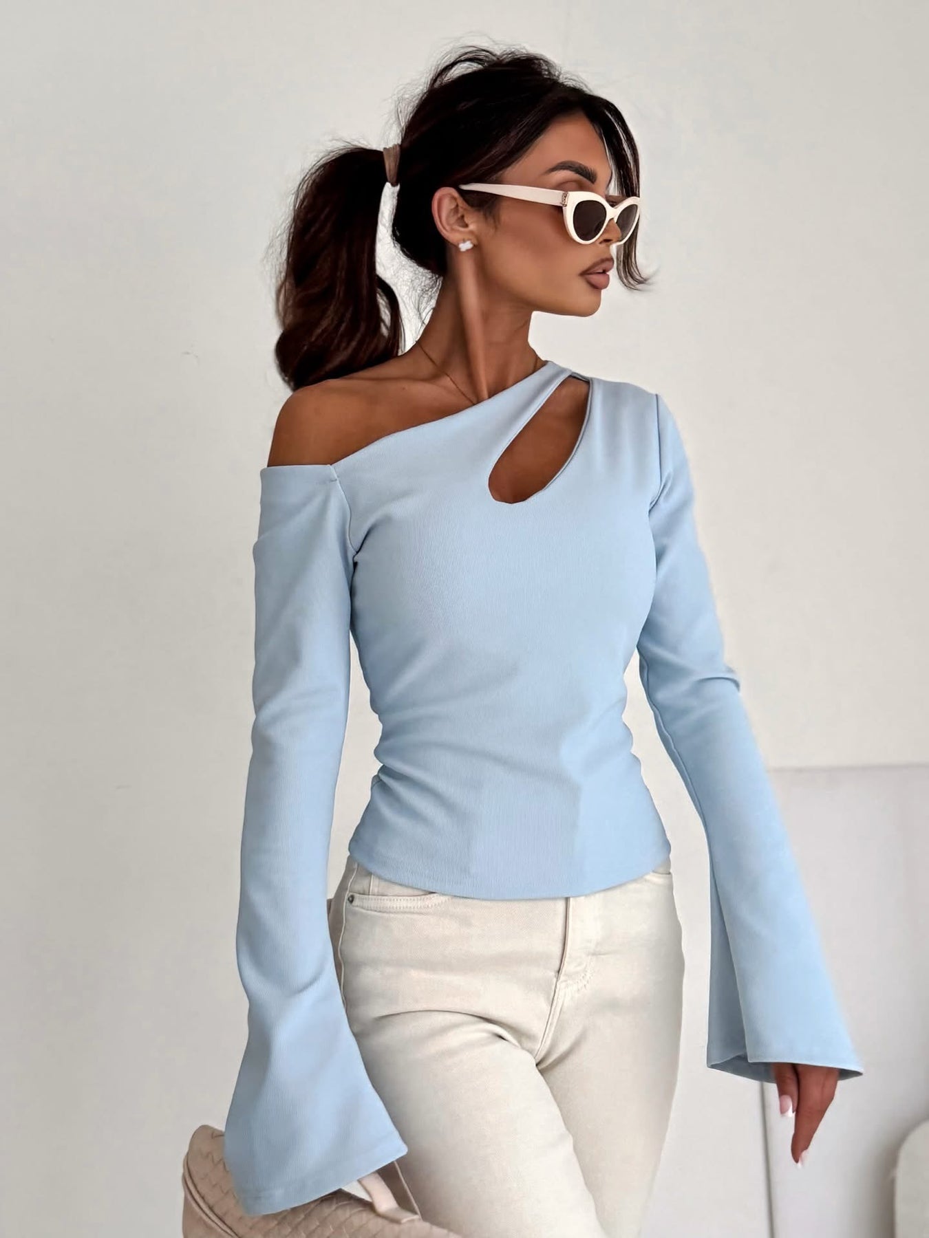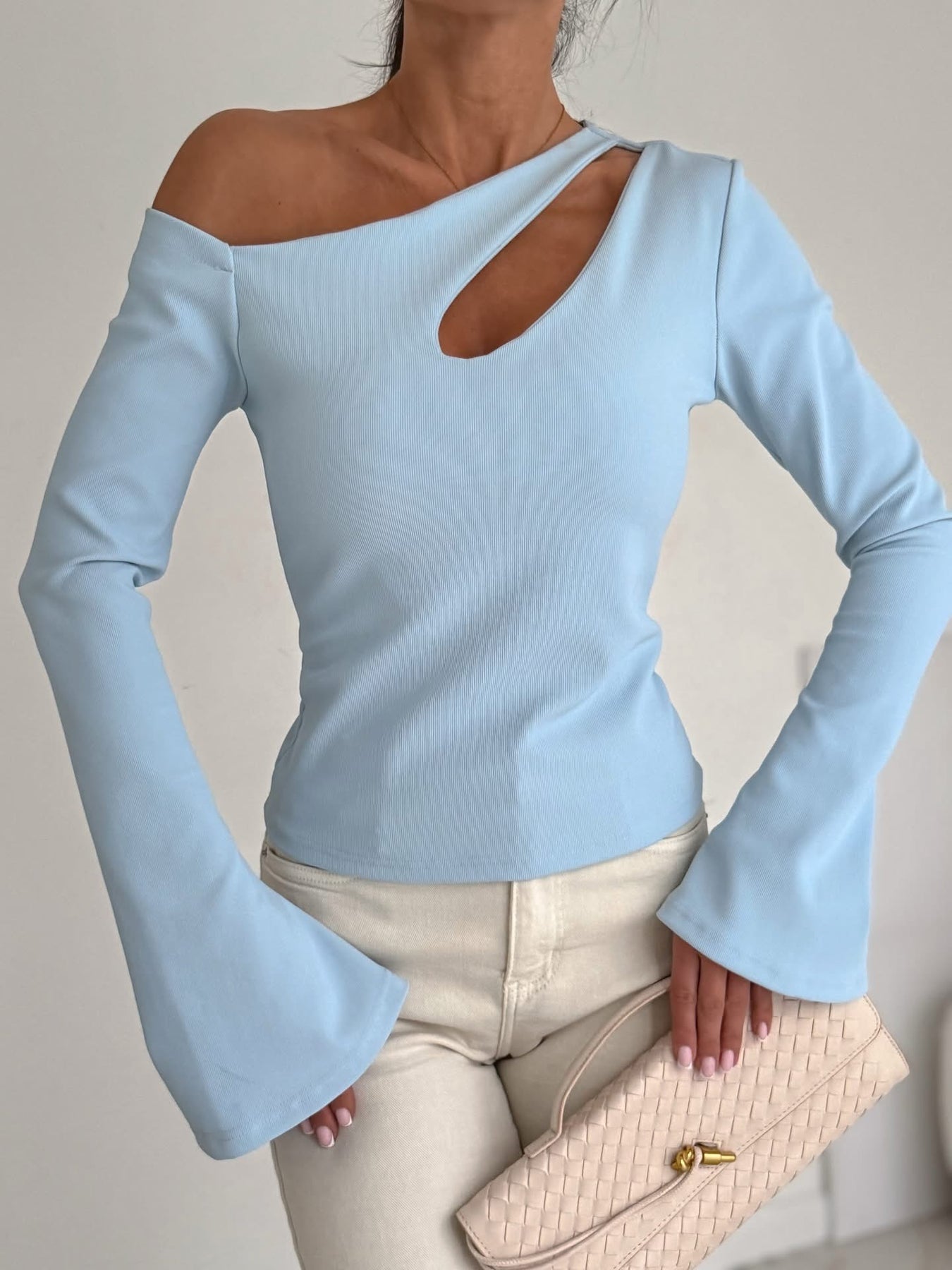 Stilingas ir išskirtinis asimetriško kirpimo palaidinė, kuri akimirksniu traukia akį. Vieno peties dizainas su subtilia iškirpte suteikia elegancijos ir lengvo seksualumo, o prigludęs siluetas gražiai pabrėžia figūrą. Ilgos, lengvai platėjančios rankovės sukuria modernų ir šiek tiek dramatišką įvaizdį.Audinys tamprus, malonus kūnui, puikiai prisitaikantis prie formų. Lengvai derinamas tiek prie džinsų kasdieniam įvaizdžiui, tiek prie elegantiškesnių kelnių ar sijono vakarui. Sudėtis : 95% medvilnė , 5% elastanas