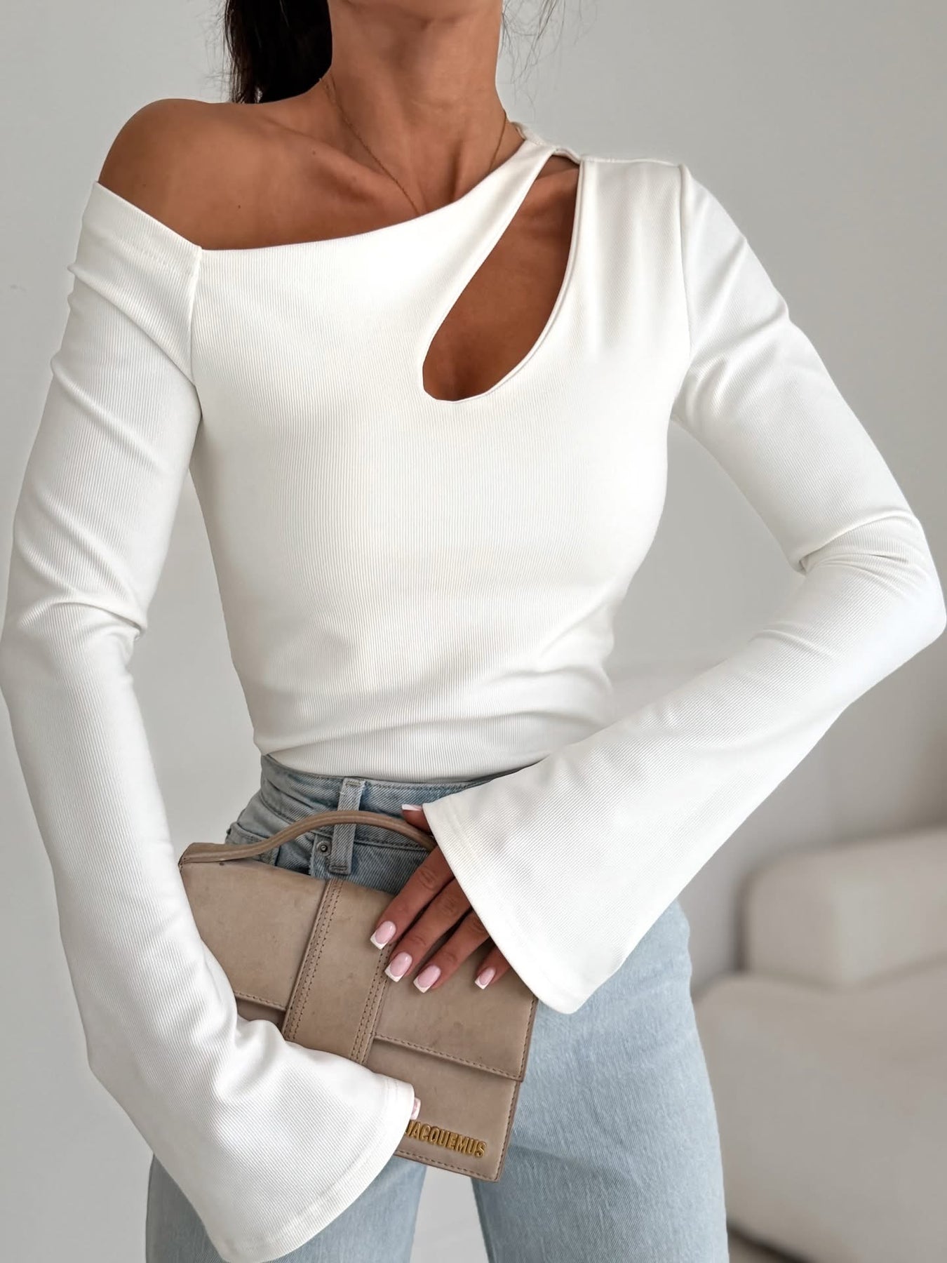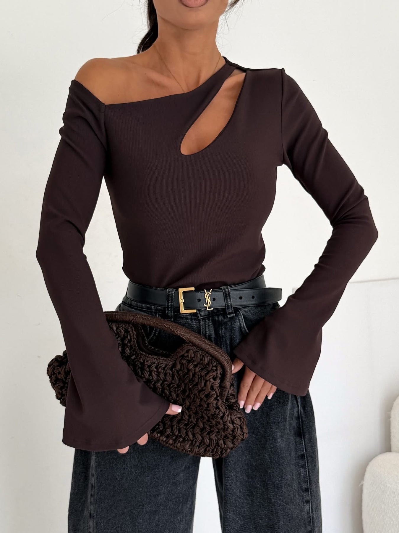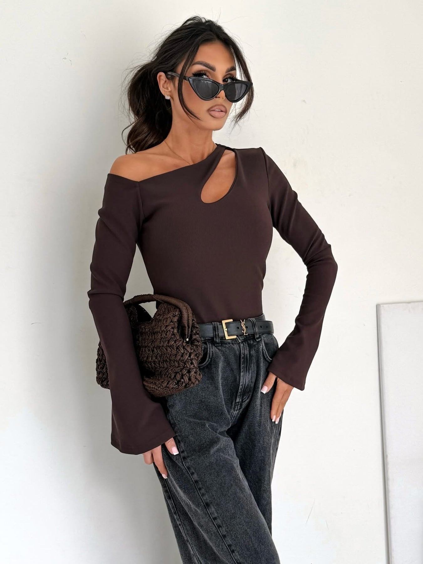 Stilingas ir išskirtinis asimetriško kirpimo palaidinė, kuri akimirksniu traukia akį. Vieno peties dizainas su subtilia iškirpte suteikia elegancijos ir lengvo seksualumo, o prigludęs siluetas gražiai pabrėžia figūrą. Ilgos, lengvai platėjančios rankovės sukuria modernų ir šiek tiek dramatišką įvaizdį.Audinys tamprus, malonus kūnui, puikiai prisitaikantis prie formų. Lengvai derinamas tiek prie džinsų kasdieniam įvaizdžiui, tiek prie elegantiškesnių kelnių ar sijono vakarui. Sudėtis : 95% medvilnė , 5% elastanas