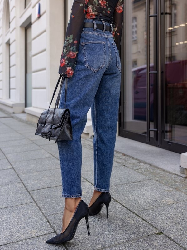 Klasikinio kirpimo džinsai aukštu juosmeniu – būtinas garderobo akcentas, suteikiantis stiliui elegantiško paprastumo. Tvirtas mėlynas džinsas patogiai priglunda ties klubais ir švelniai platėja link kojų, sukuriant madingą „mom fit“ siluetą. Sudėtis : 99% medvilnė, 1% elastanas.