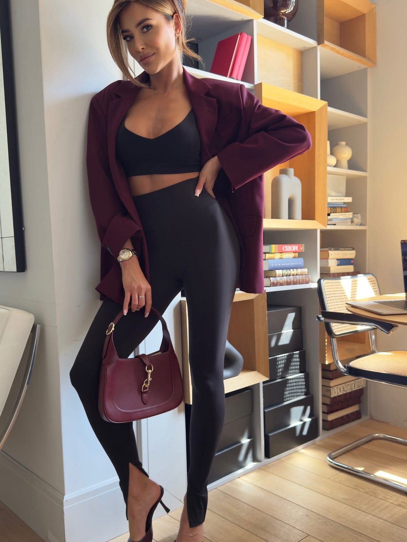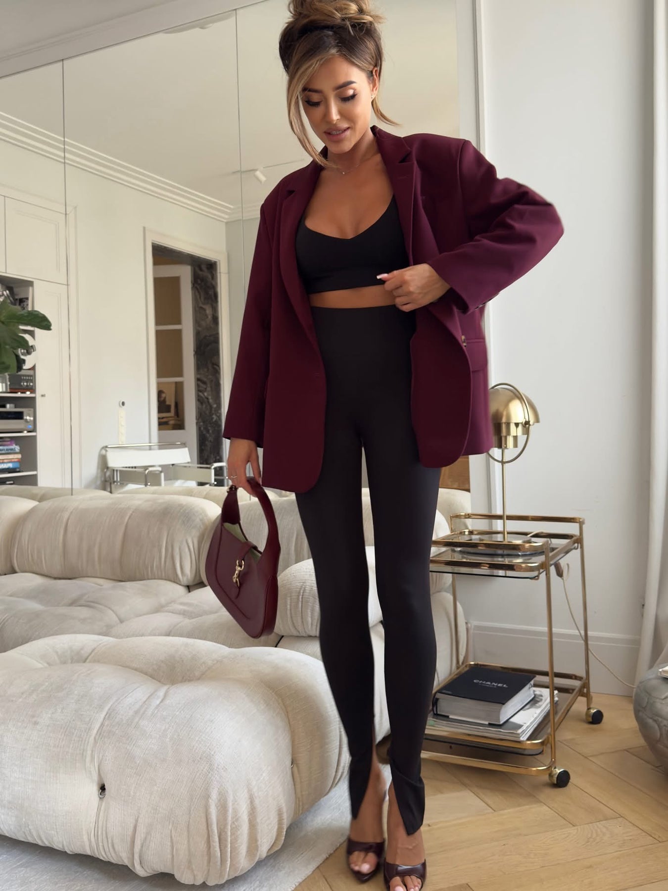 Juodos, aukštu liemeniu tamprės, kurios išsiskiria priekyje esančiu subtiliu skeltuku. Šis dizaino akcentas suteikia modernumo, vizualiai ilgina kojas ir leidžia išryškinti avalynę. Tamprės puikiai priglunda prie kūno, išryškina siluetą ir užtikrina komfortą visą dieną.Pagamintos iš tamprios, kokybiškos medžiagos, todėl yra itin patogios ir nevaržo judesių. Tinka tiek kasdieniams deriniams su oversized džemperiu ar marškiniais, tiek elegantiškai aprangai su švarku bei aukštakulniais. Sudėtis : 85% poliesteris, 15% spandex.
