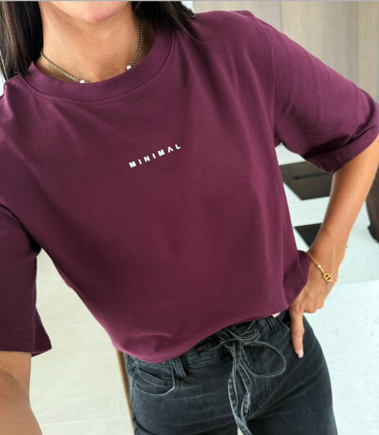 Universalūs „Minimal“ marškinėliai – paprasto dizaino, lengvai derinami prie įvairaus stiliaus aprangos. Pagaminti iš minkšto, kvėpuojančio audinio, jie užtikrina komfortą visą dieną. Tinka tiek kasdienai, tiek miesto stiliaus deriniams. Sudėtis : 95% medvilnė, 5% elastanas.