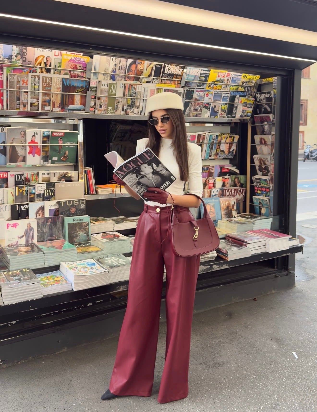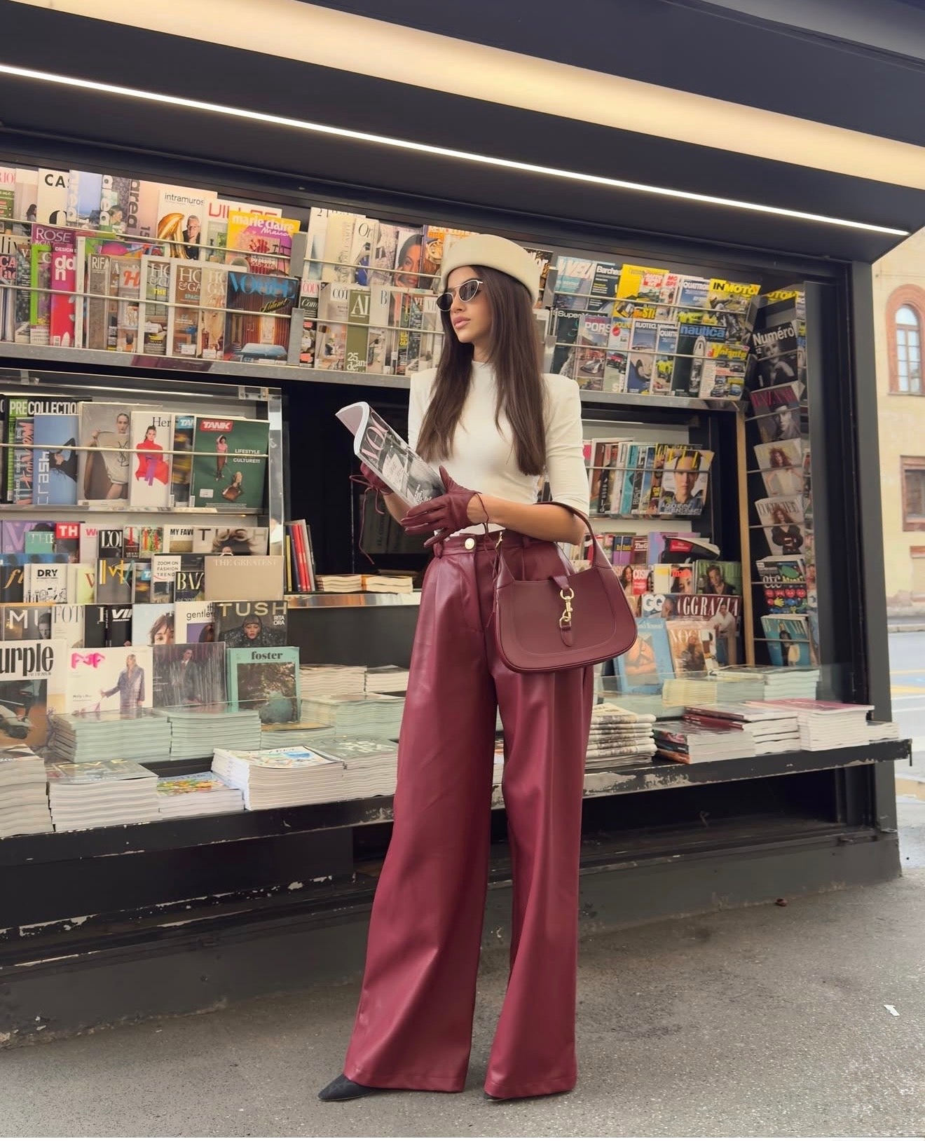 Stilingos, modernios ir išskirtinai elegantiškos – šios burgundiškos kelnės taps jūsų įvaizdžio pažiba. Pagamintos iš aukštos kokybės eco odos, jos turi lengvą prabangos blizgesį ir idealiai krintantį siluetą.
