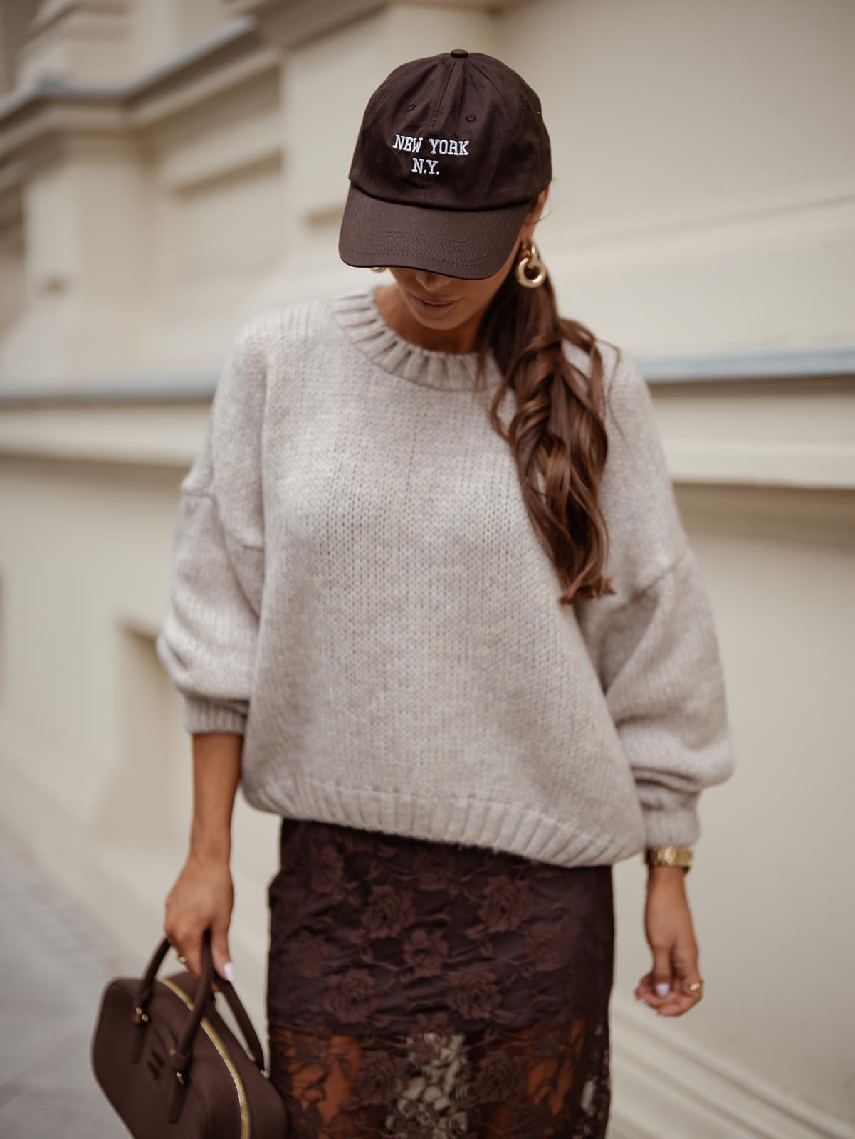 Jaukus ir šiltas megztukas, pagamintas iš minkšto vilnos bei akrilo derinio. Laisvas siluetas, nuleisti pečiai ir lengvai platėjančios rankovės suteikia modernumo bei patogumo, o apvali iškirptė pabrėžia klasikinį stilių. Šis megztukas – universalus pasirinkimas, tinkantis tiek kasdienai, tiek elegantiškam deriniui su sijonu ar kelnėmis. Dydis Uni tinkamas S/M/L