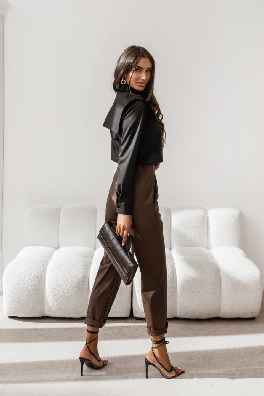 Elegantiški marškiniai  – rafinuoto stiliaus pasirinkimas moderniai moteriai. Modelis išsiskiria platoku kaklaraiščiu, kurį galima surišti į kaspiną arba palikti laisvai kristi, taip suteikiant įvaizdžiui lengvumo ir prabangos. Tiesaus silueto kirpimas bei dekoratyvinė klostė per krūtinės sritį suteikia išskirtinumo ir subtilios struktūros.Pagaminti iš aukštos kokybės audinio, malonaus liesti ir lengvai krentančio ant kūno. Šie marškiniai puikiai dera tiek su klasikinėmis kelnėmis ar sijonu biure, tiek su odiniais ar džinsiniais drabužiais laisvalaikiu. 95% medvilnė, 5% elastanas.