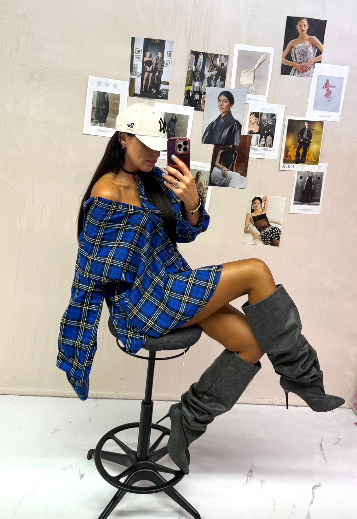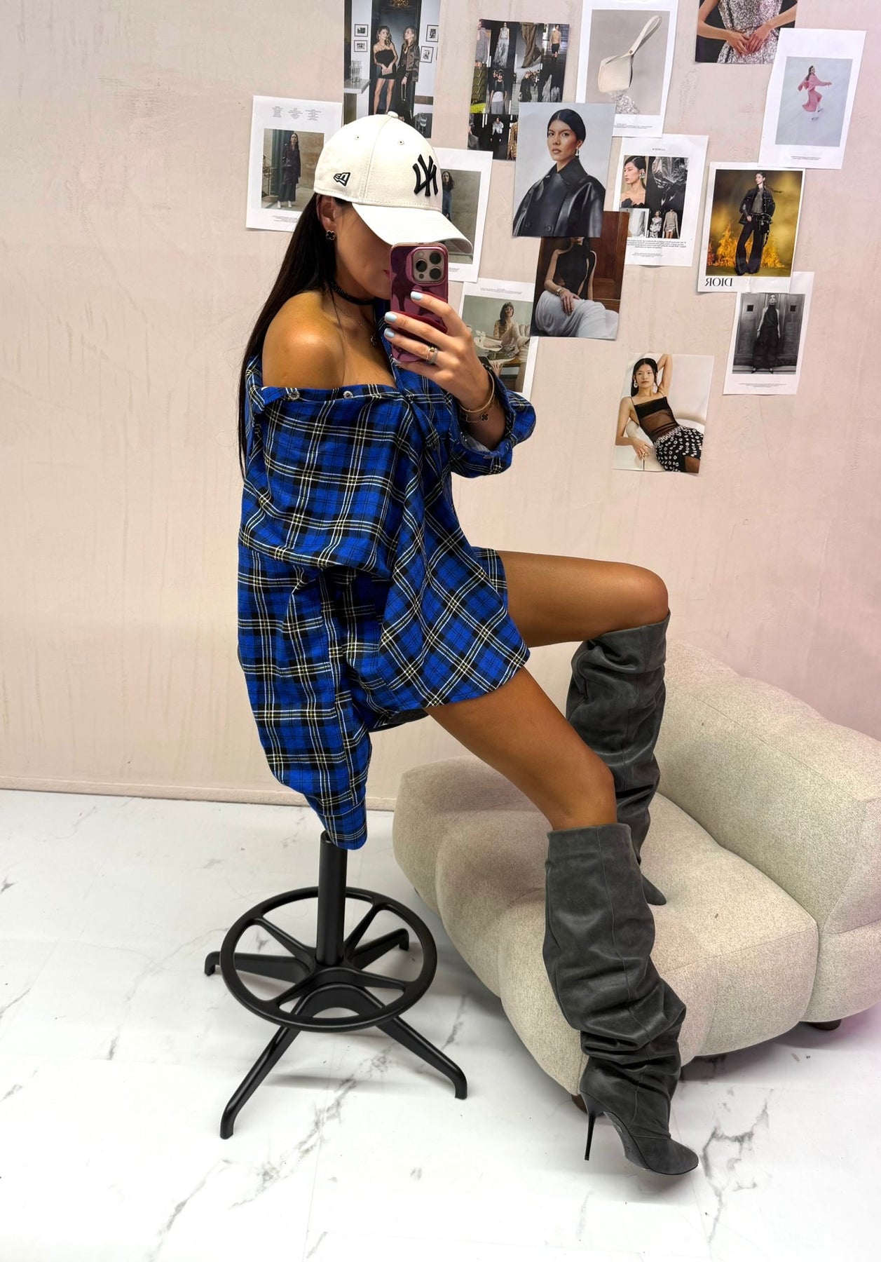 Šie marškiniai – ryškaus, stilingo ir laisvo silueto modelis, išsiskiriantis intensyvia mėlyna spalva su juodais bei geltonais langučiais. Audinys primena švelnų, lengvai krintantį flanelės tipo tekstilės variantą, kuris suteikia komforto ir jaukumo pojūtį.Modelis yra oversize – platesnė pečių linija, ilgesnė ir laisvai krintanti apačia, todėl puikiai tinka tiek kaip marškiniai, tiek kaip marškininė suknelė. Priekyje – pilnas sagų užsegimas, klasikinis apykaklės dizainas, o rankovės – ilgos ir lengvai platėjančios. Tai universalus, madingas drabužis, kurį galima derinti su ilgaauliais batais, sportiniais bateliais ar timpėmis – tiek kasdienai, tiek street-style įvaizdžiui. Sudėtis : 100% medvilnė