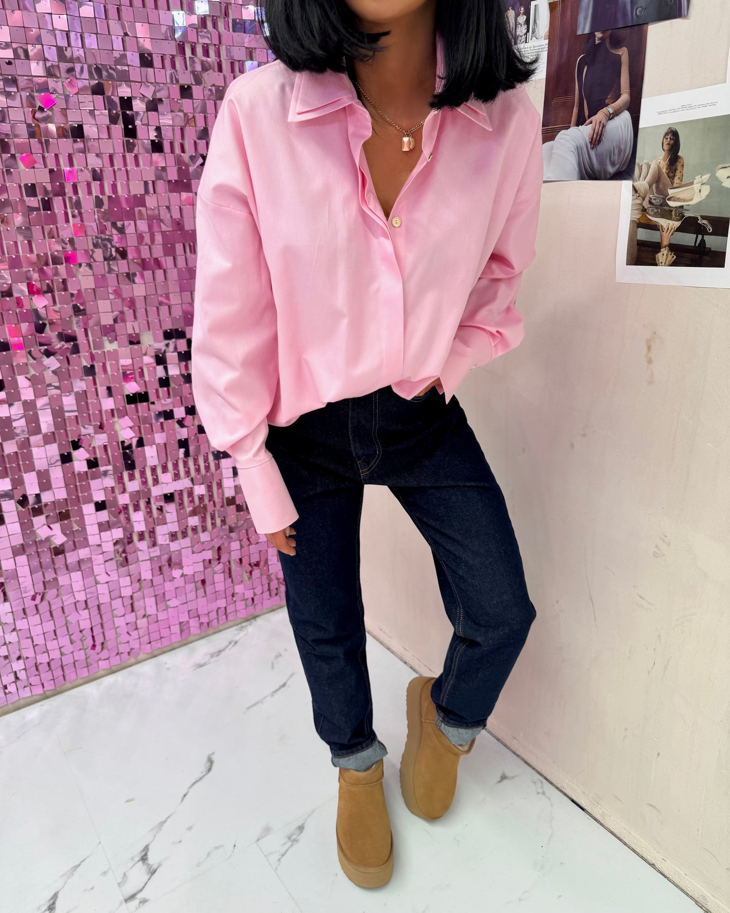 Tai klasikinio stiliaus, bet šiuolaikiškai atrodantys marškiniai. Modelis pasiūtas iš lengvo audinio, kuris maloniai gula ant kūno. Oversize kirpimas suteikia laisvumo ir modernumo – tokie marškiniai gali būti dėvimi tiek kasdien, tiek kaip akcentas prie išskirtinio įvaizdžio. Sudėtis : 95% medvilnė, 5% elastanas. UNI DYDIS